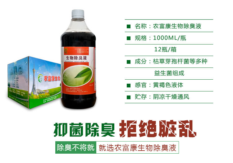 为了您的切身利益,请选用农富康正规厂家生物除臭液 本产品为微生物制剂,无任何药物成分,无残留、无任何副作用可放心使用!