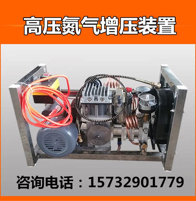 电动氮气增压机的工作原理是利用面积比形成的压力差,通过大活塞的小作用力使小活塞产生的高压氮气进行输出。高压端的氮气通高压单向阀的方向进行控制它的输出。