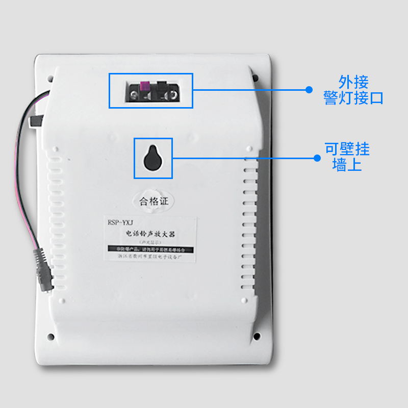 大功率电话铃声放大器直接接在电话线上,用于放大电话响铃的声音,能够将电话铃声放大至10W,是目前国内外市场上铃声-响的电话放大铃。并且还有超亮红灯闪烁。响铃声音是电话铃音,不是警报音。